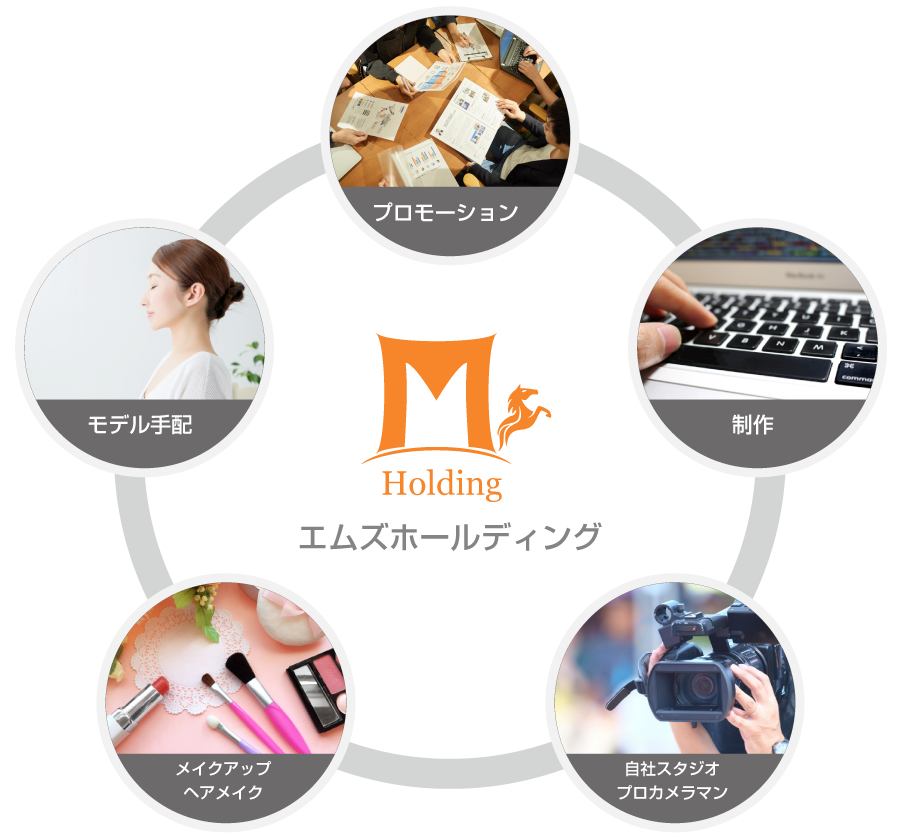 広告の媒体先から、モデル手配、カメラマン、メイクアップ、自社スタジオ等を完備しあらゆる広告をトータルプロデュースします。